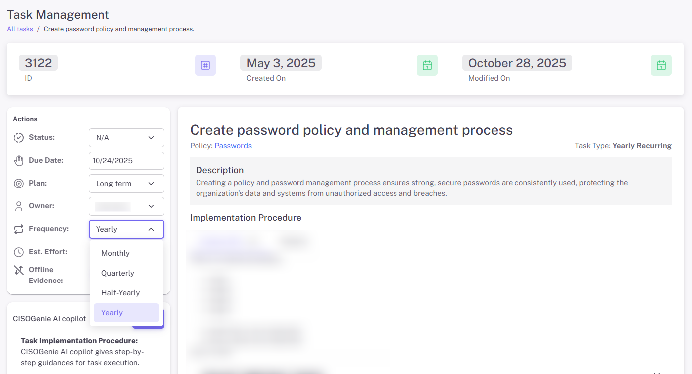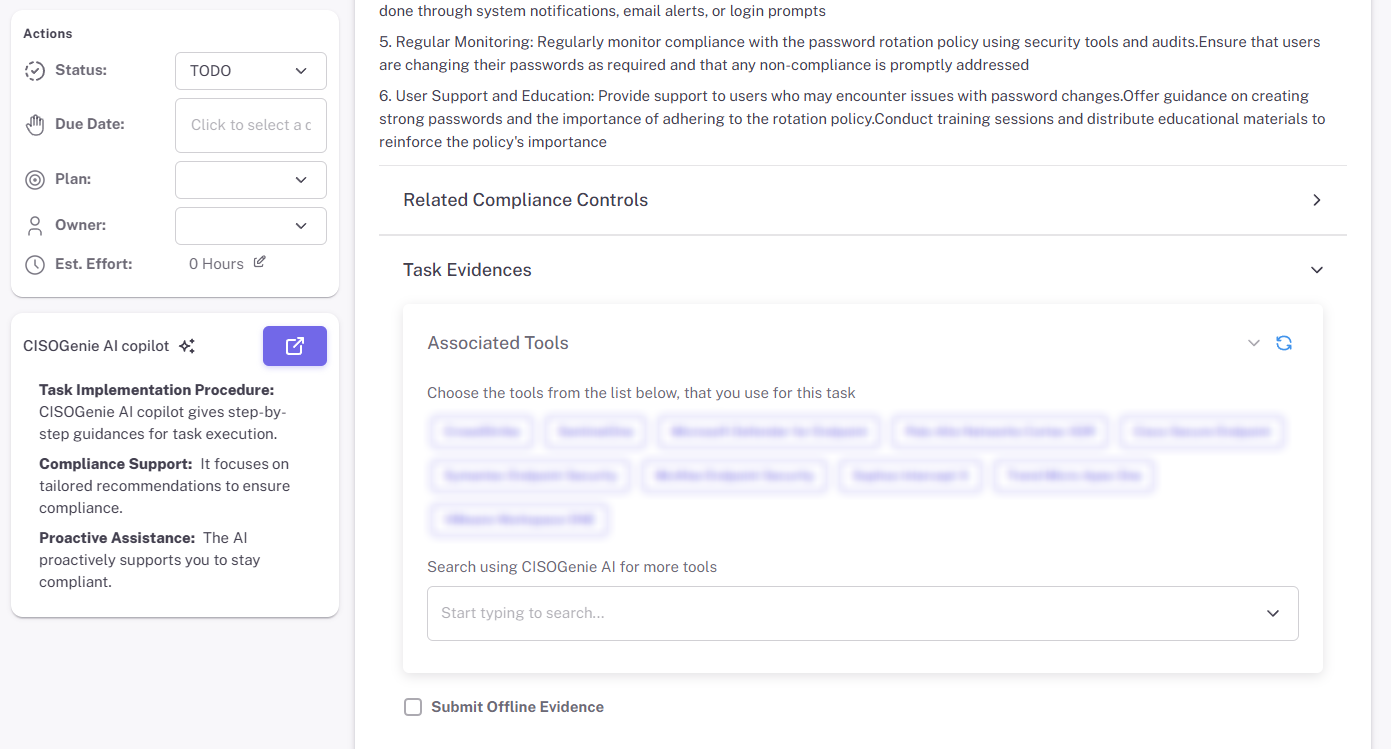 CISOGenie ensures the right people take action at the right time — from policy rollouts and evidence collection to remediation and audits, everything becomes structured, visible and accountable.