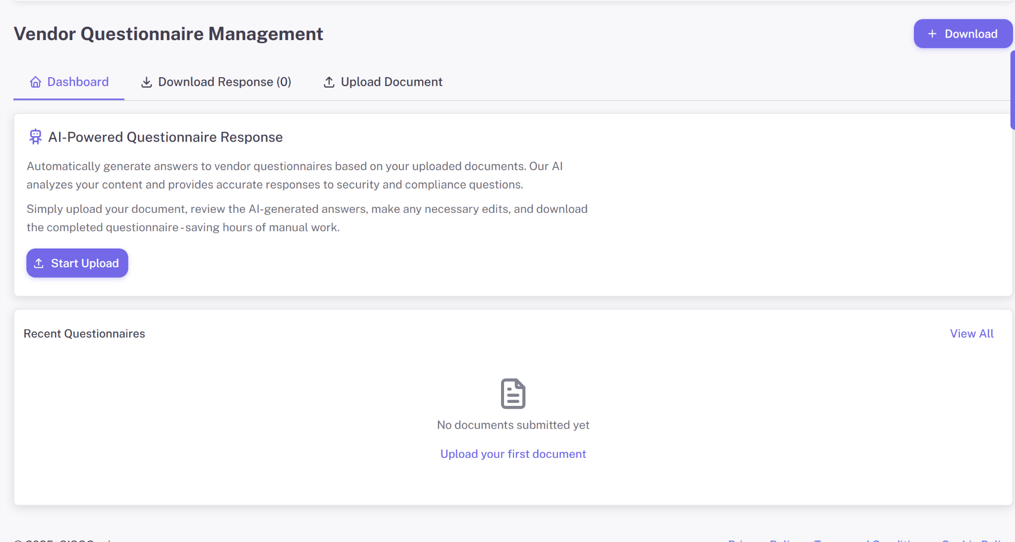 Upload questionnaires and automatically generate suggested responses using AI, reducing manual effort and ensuring consistent answers aligned with your policies.
